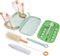 Ky set i gjithanshëm për pastrimin e biberonëve është një zgjidhje ideale për prindërit që janë gjithmonë në lëvizje. Me një dizajn kompakt dhe funksionalitet të lartë, ai përfshin gjithçka që ju nevojitet për të mbajtur aksesorët e ushqyerjes së foshnjës tuaj të pastër dhe të higjienshëm gjatë udhëtimeve.
