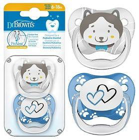 Projektuar nga një dentist pediatrik për të parandaluar problemet dentare – dhe tani projektuar për t'u parë më lehtë në errësirë! Cuco shumë i butë me një kalim të veçantë të daljes së ajrit, i cili redukton presionin në qiellzën e foshnjës, redukton thithjen dhe shpërndan ajrin gjatë thithjes. Dizajn anatomik në formë fluture me kthesa mbrojtëse dhe komode për fytyrën e foshnjës, pasi i lë hapësirë të mjaftueshme hundës dhe faqeve. Me ndriçim të sigurt, jo toksik, bëhet shumë e lehtë për fëmijën dhe prindërit të gjejnë biberonin gjatë natës. Ajo rimbushet thjesht nga ekspozimi në diell. Pa bisphenol-A, në tre lloje në varësi të moshës së foshnjës. Paketimi: cuco ortodontikë Dr. Brown janë të disponueshëm në një gamë të gjerë ngjyrash dhe dizajnesh, në një paketë prej 2 copë.