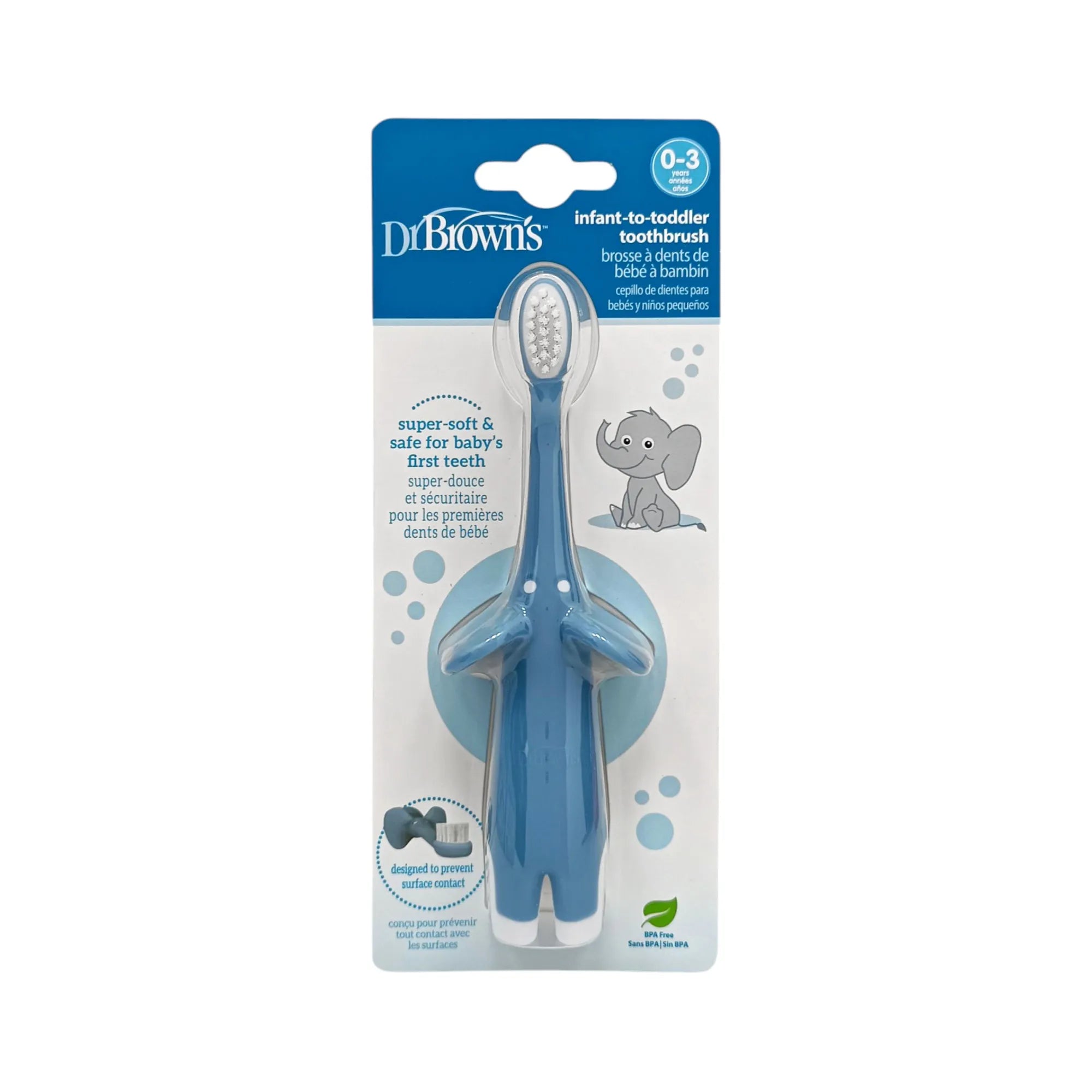 Lani dhëmbët e foshnjës tuaj lehtësisht dhe ndihmojini ata të krijojnë zakone të mira të higjienës orale me furçën e dhëmbëve DrBrown. Kjo është një furçë dhëmbësh edukative që është shumë e butë dhe e sigurt për dhëmbët e parë dhe mishrat e ndjeshme të foshnjës. Ka një dorezë anatomike ideale për duart e vogla të foshnjës tuaj. Në formën e një gjirafe për ta bërë krehjen pjesë të lojës. Kujdes! Një i rritur duhet të mbikëqyrë larjen e dhëmbëve. Mos e lini fëmijën të ecë ose zvarriten me furçën e dhëmbëve në duar ose në gojë.