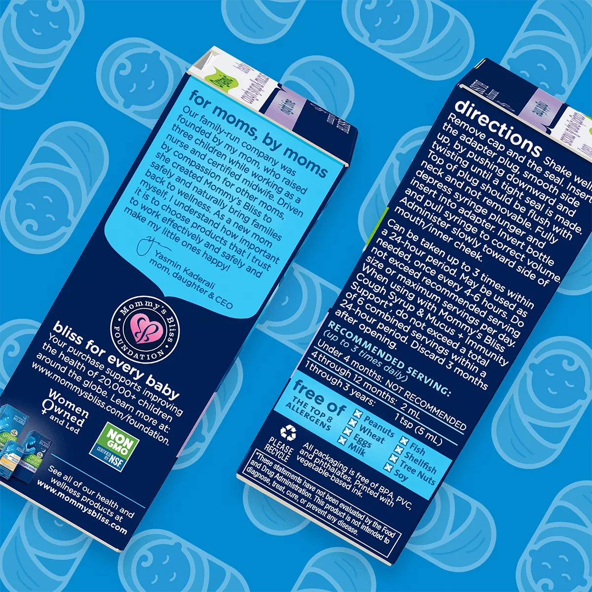 Mommys Bliss , shurupi i kollës,me bazë bimore për fëmijët  i ndihmon në lehtësimin e kollës duke promovuar një gjumë të qetë.