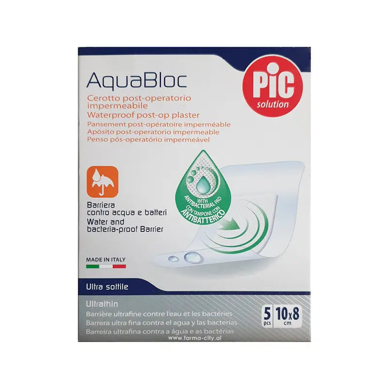 Pas një operacioni, pas heqjes së qepjeve apo kur kemi të bëjmë me plagë të mëdha ky ankerplast kombinon prakticitetin, higjenën dhe rezistencën ndaj ujit që është mjaft e dobishme. Aquabloc mbron plagët nga rreziku i infeksionit falë tamponit antibakterial me klorheksidinë i cili ofron një spektër të gjerë antibakterial dhe krijon një barrierë rezistente kundër ujit.