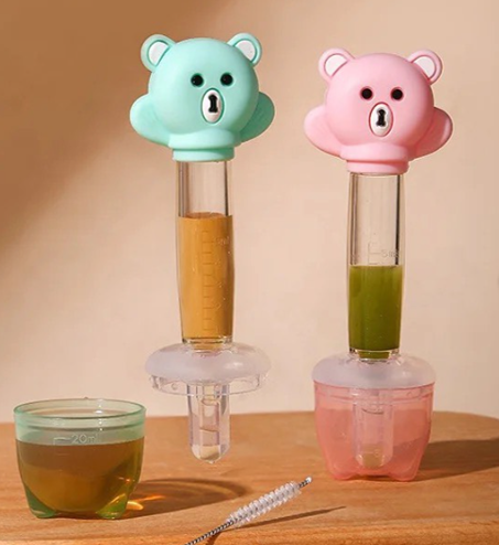 Një  nga problemet më të mëdha te bebushat janë dhënia e shurupeve të ndryshme medikamente apo vitamina.. • këto “shiringa “ me kokë silikoni , e cila sherben dhe si vakum me thithje direkt të  shurupeve - lehtëson këtë proces.. • me dizenjo interesante dhe tërheqëse për bebat që të mos tremben..