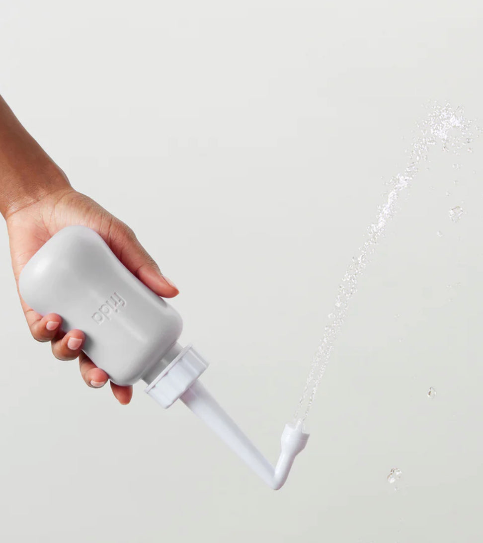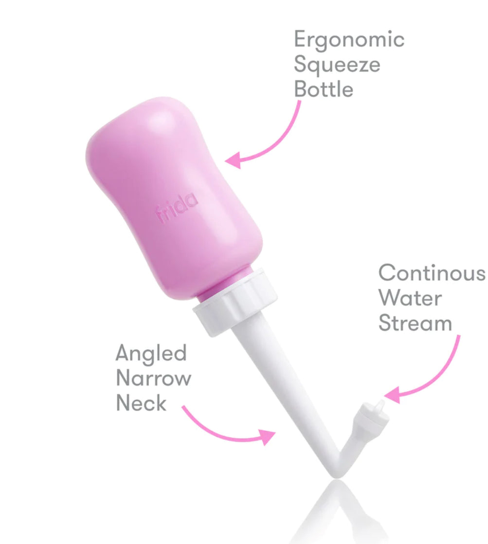 Është MomWasher për lehtësim dhe kujdes pas lindjes atje poshtë. PASTRIMI: Shishja Peri me kokë poshtë është hapi 1 në regjimin e rikuperimit pas lindjes DIZAJNI ERGONOMIK : Projektuar posaçërisht për t'u mbajtur me kokë poshtë duke shmangur situatën e frikshme të dorës në tualet - me një qafë të ngushtë me kënd për një rrjedhë të vazhdueshme lehtësimi pikërisht aty ku i duhet mamasë. Nënat me seksion cezarian: Pastroni vaginën dhe prerjet pa presion.