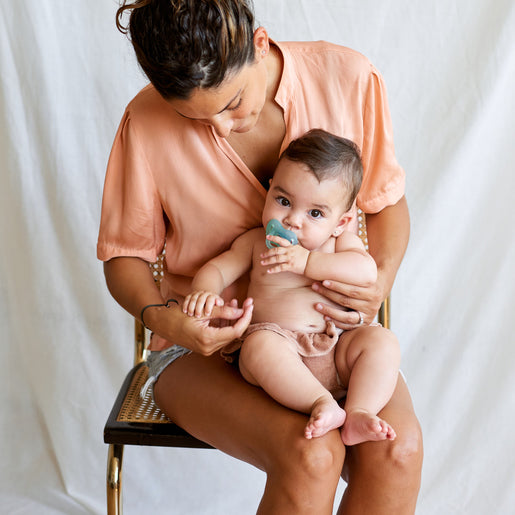 E krijuar vetem prej silikoni. Butësia dhe fleksibiliteti i saj PIECE dhe doreza e saj me kënd nënkuptojnë se nuk pengon kur fle ose nuk lë shenja në fytyrën e foshnjës.