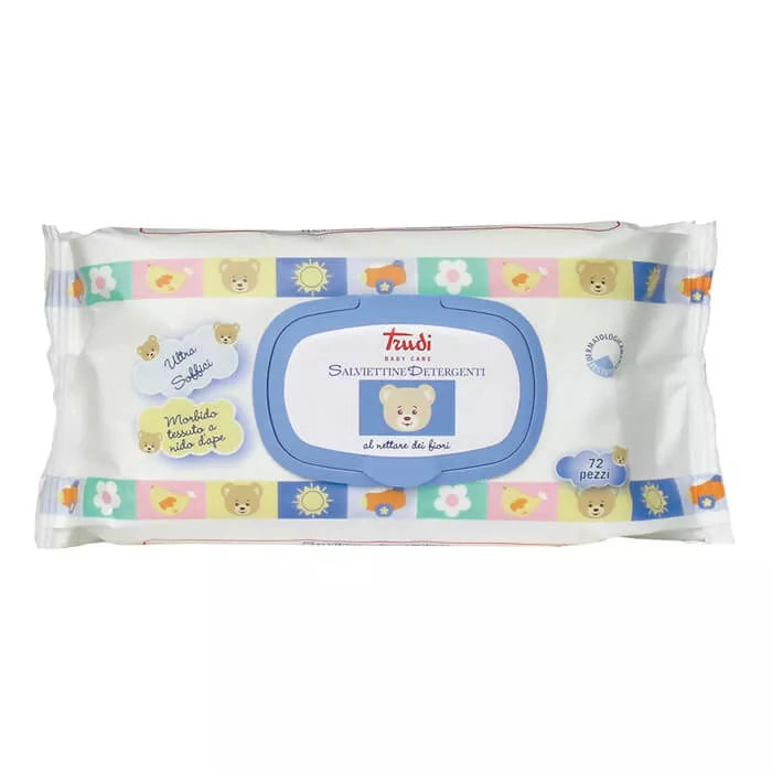 Letrat e lagura TRUDI falë copës shumë të butë, kujdeset për lëkurën e bebes me shumë delikatesë duke lënë në lëkurë një shtresë të lehtë hidratuesi me nektarin e luleve. Ideale gjithashtu për duart dhe fytyrën e fëmijës.