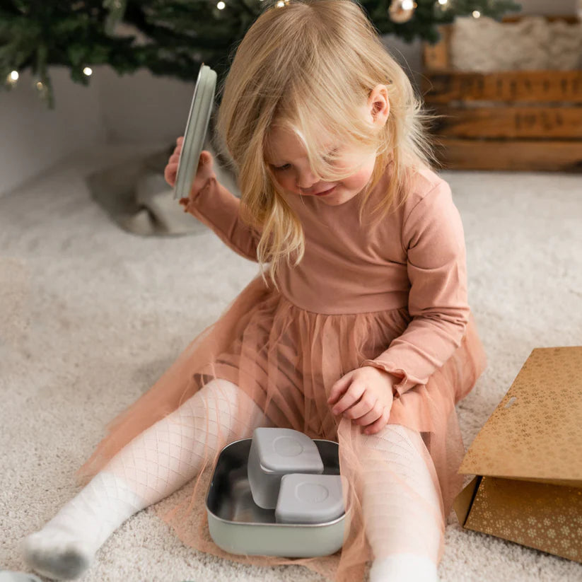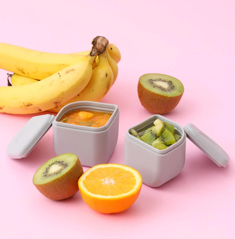 Nga puretë tek kutia e drekës - kombino dhe përshtat vaktet për të gjitha moshat! Ky set me dy kuti-tasë të vegjël është ideal për fëmijët në lëvizje, nga foshnjat që eksplorojnë ushqimet pure te fëmijët më të mëdhenj që po ushqehen vetë. Kombinimi i kutisë GrowBento me kutitë-tasë të vegjël që nuk rrjedhin krijon hapësirë për një gamë të gjerë kombinimesh ushqimesh duke përfshirë edhe lëngje si supa e nxehtë dhe salcat. Materialet shumë të qëndrueshme zgjasin shumë dhe rriten së bashku me nevojat e fëmijëve tuaj, nga ushqimet e imëta të dorës deri tek ushqimet e drekës që mund të merren në shkollë.   Seti përfshin:
