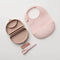 Seti i plotë i ngrënies që lehtëson vaktet e ushqyerjes në ambiente të jashtme për prindërit dhe për bebushat! Ky set silikoni ka gjithçka që u nevojitet bebave për të shijuar vaktet e tyre jashtë shtëpisë - një pjatë që fiksohet duke u ngjitur dhe një gushore, e cila mbyllet dhe fiksohet për t'u ruajtur, ndërsa lugët 2n1 përshtatet me aftësitë e fëmijës suaj.    Ky produkt përfshin