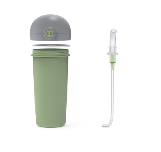 Shishe plastike 'We Care' 380 ml me pipë silikoni. Pa BPA/PVC/ftalate, plotësisht e papërshkueshme nga rrjedhjet.