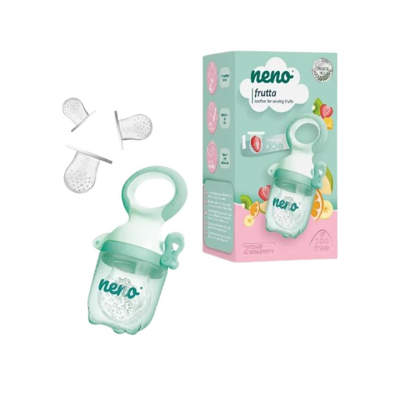 NENO FRUTTA është një mbajtëse inovative dhe praktike për frutat e ngrira, dizajnuar për të ndihmuar në lehtësimin e dhimbjeve të dhëmbëve dhe mishrave të dhëmbëve tek foshnjat dhe fëmijët e vegjël. Falë materialit të ftohtë që ruan freskinë, kjo mbajtëse ofron një përvojë të këndshme dhe qetësuese gjatë daljes së dhëmbëve.