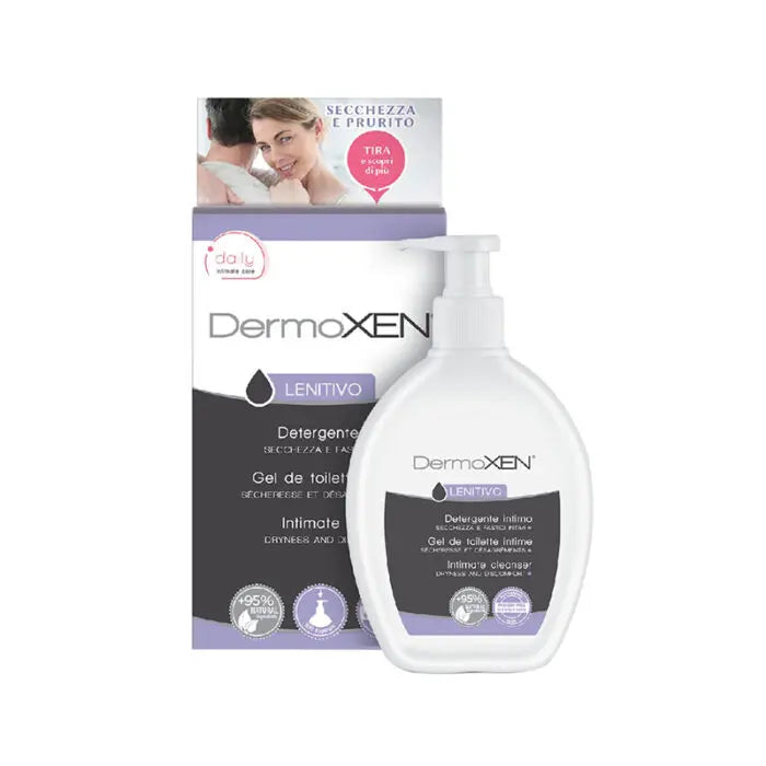 DermoXen Lenitivo kujdeset për femrat duke ushtruar një veprim hidratues dhe qetësues në prani të thatësisë vulvovaginale, kruajtjes dhe skuqjes me origjinë të ndryshme, falë përzierjes së saj të ekstrakteve me origjinë bimore. Parfum pa alergenë.