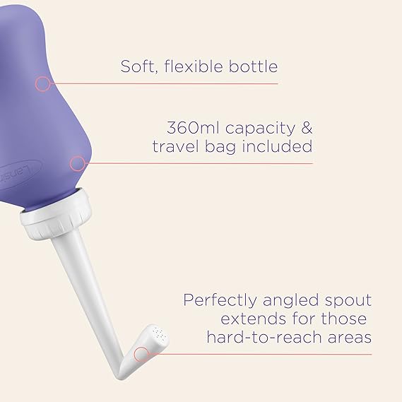 Shishja larje pas lindjes e cila  siguron një rrjedhë të butë uji pastrues; Projektuar me një grykë me kënd i cili  ndihmon në pastrimin e zonave të vështira për t'u arritur. Dizajn ergonomik me grykë të palosshme për transport të lehtë. Shtrydhja e  lehtë e bërë nga material me prekje të butë i  ndihmon gratë të lulëzojnë ndërsa bëhen nëna të reja. E themeluar nga një nënë gjidhënëse, Lansinoh i është përkushtuar mbështetjes së nënave të reja për gati 40 vjet.