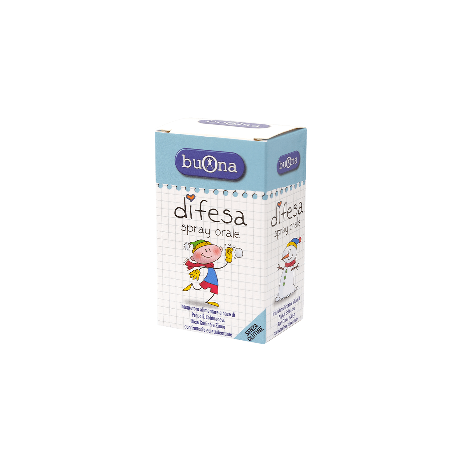 Spraji Buona Difesa përmban substanca aktive natyrale të afta për të përforcuar mbrojtjen natyrore të fëmijëve. Falë aromës së këndshme të luleshtrydhes është i përshtatshëm për fëmijët.