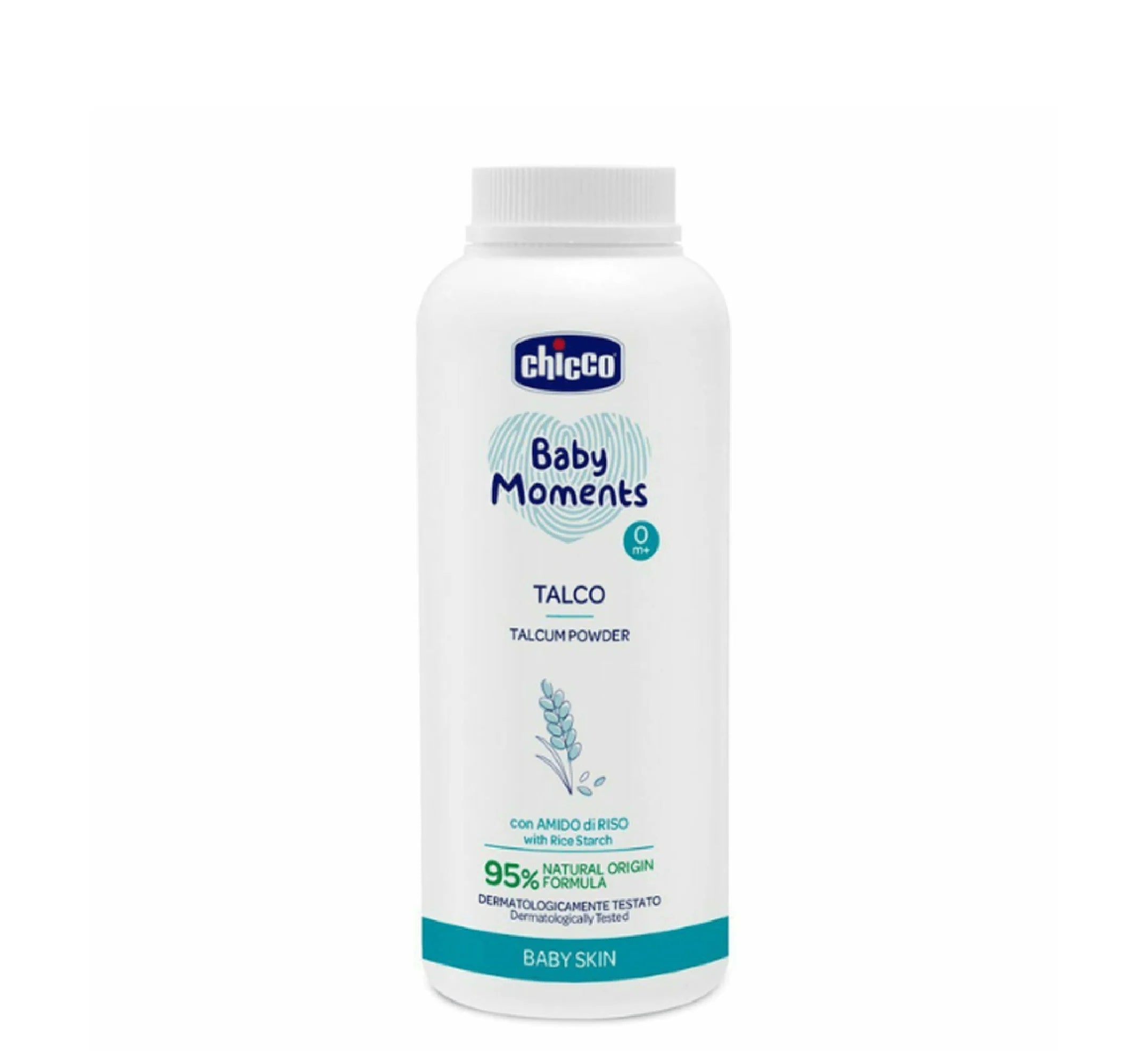 Pluhuri i talkut Baby Moments nga Chicco është krijuar posaçërisht për të mbrojtur dhe freskuar lëkurën e ndjeshme të foshnjës që nga lindja. Formula e tij e pasuruar me amid orizi ndihmon në absorbimin e lagështirës së tepërt duke lënë lëkurën të thatë, të butë dhe të freskët, pa bllokuar frymëmarrjen natyrale të saj.