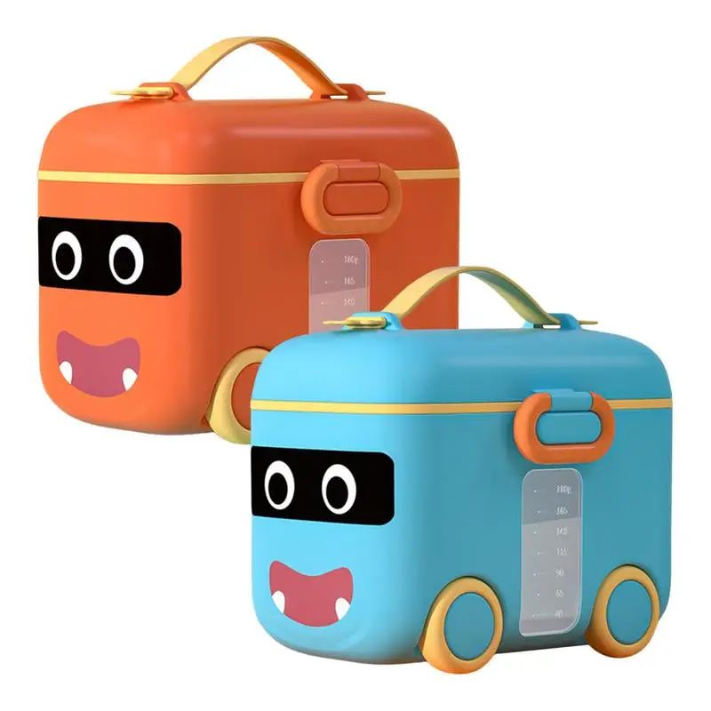 Ky kontenitor inovativ dhe praktik është projektuar posaçërisht për ruajtjen dhe transportin e sigurt të qumështit formulë për foshnjat. Me dizajn argëtues në formë makine me fytyrë fëmijërore dhe rrota të integruara, ai kombinon funksionalitetin me argëtimin – perfekt për prindër në lëvizje dhe për ta bërë ushqyerjen më të këndshme.
