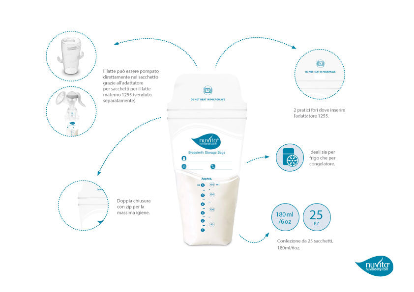 Nuvita Qese per Ruajtjen e Qumeshtit te Gjirit 25 cp